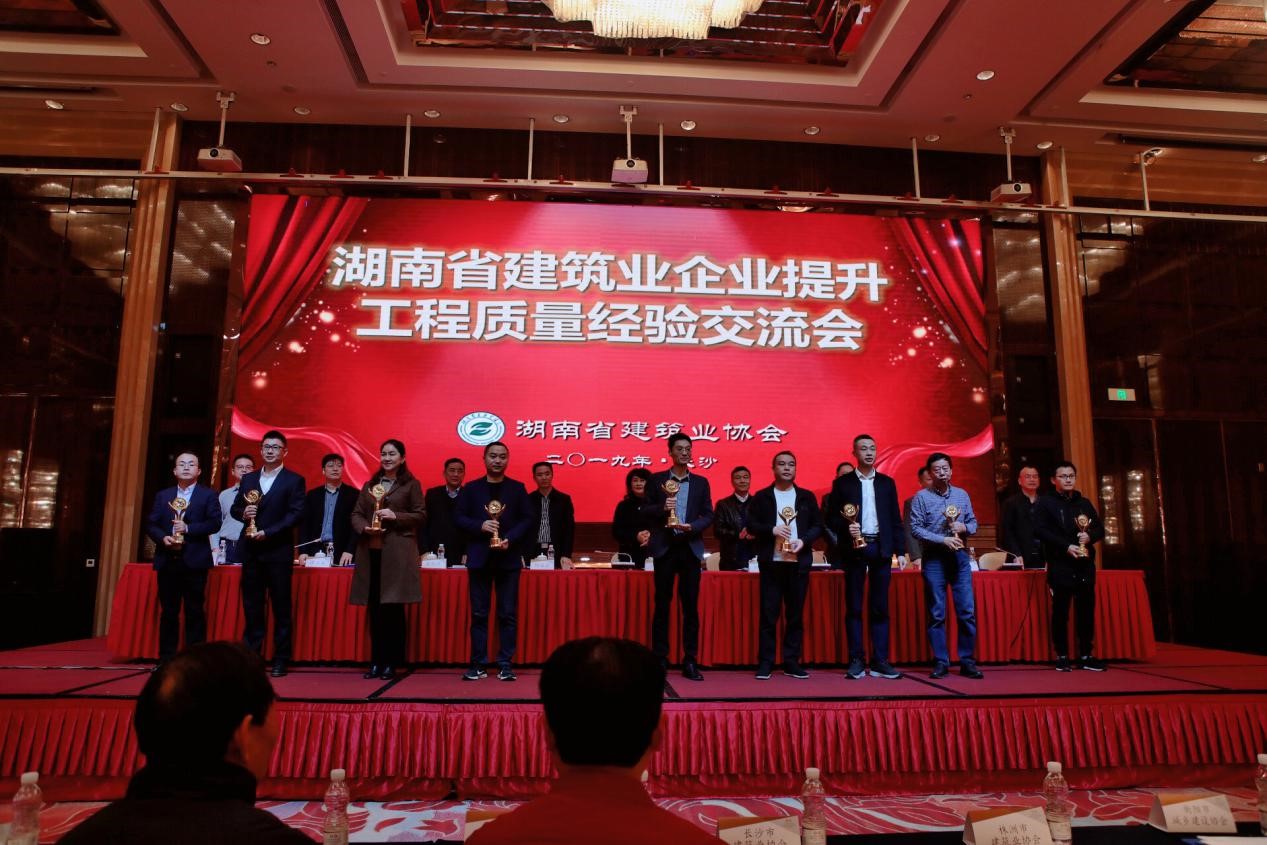 会上,各位领导和嘉宾为获得2017-2018年度第二批湖南省建设工程芙蓉奖的企业代表颁发了奖杯。宁厅长作了重要讲话,对我省精品工程创建工作给予了肯定,并围绕质量安全主题,向我省施工企业提出了三点意见。一是提高思想认识和政治站位,提升建筑业供给高品质建筑产品的能力和水平。二是抓好建造方式、工程技术以及管理模式等的协同创新,不断推动我省建筑产业现代化。三是切实落实劳务用工教育培训的主体责任,积极配合行业主管部门相关工作,共同推进我省建筑产业工人队伍的建设工作。最后,宁厅长结合11月22日全国安全生产电视电话会议精神,重点对岁末年关及冬季施工安全生产工作提出了具体要求。